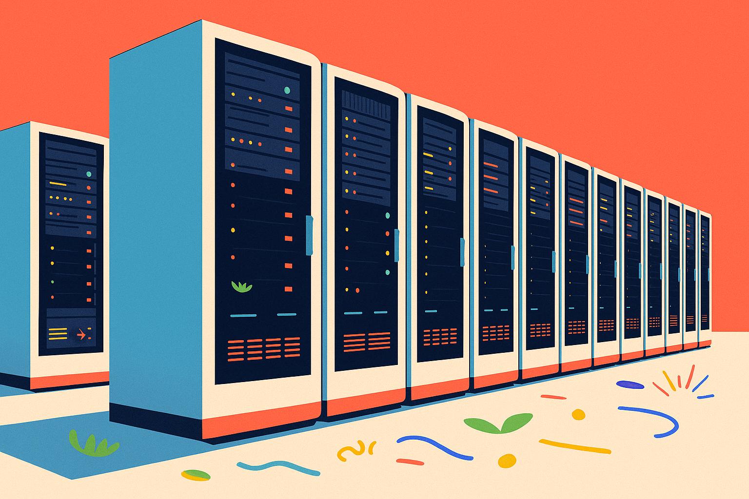 Picture rows upon rows of tall metallic structures, each filled with blinking lights and a symphony of whirring sounds –